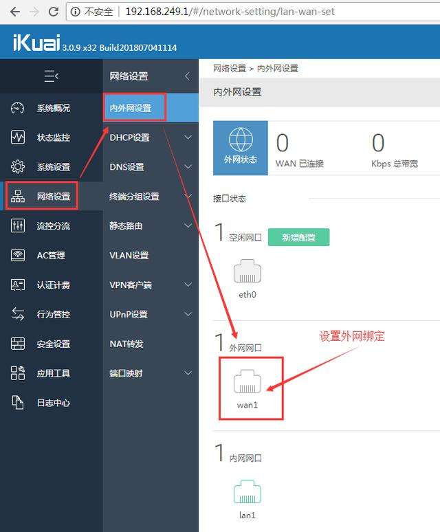 打开浏览器输入:192.168.249.1 回车登录,设置wan1外网绑定