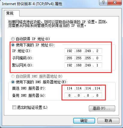 第六步:在电脑设置软路由登录默认IP地址为:192.168.249.1 方便登录软路由