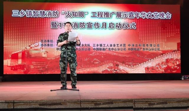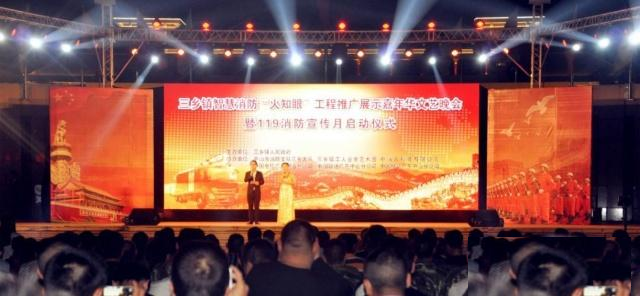 为切实发动社会各界关注消防安全,创新举措探索智慧消防“火知眼”模式,不断提升社会火灾防控水平,2018年11月8日,由中山三乡镇人民政府主办,中山市消防支队三乡大队、中消云科技有限公司、中国电信广东中山分公司、中国联通广东中山分公司、中国移动广东中山分公司共同协办的智慧消防“火知眼”工程推广展示嘉年华文艺晚会暨119消防宣传月启动仪式在三乡镇文化广场隆重举办。