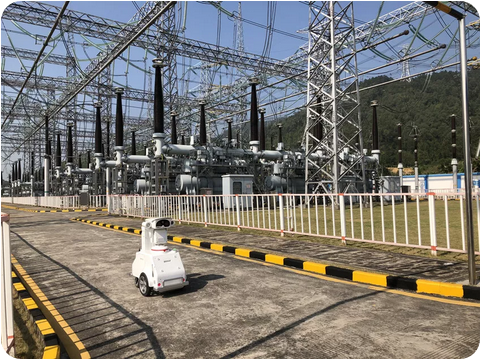 智能巡检机器人正在500千伏江门站对设备外观、仪表读数进行检查,并用红外成像仪进行红外测温。