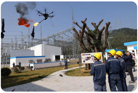 南方电网广东江门供电局无人机团队现场演示喷火无人机清障