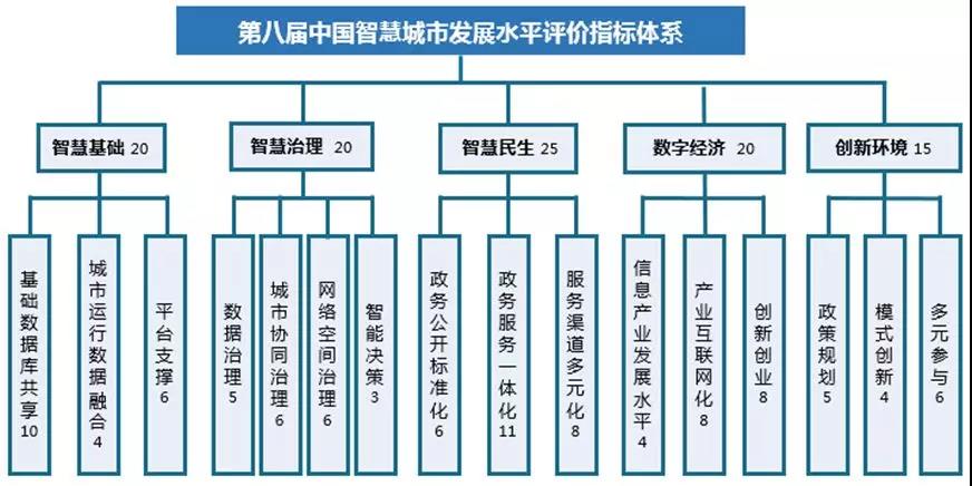 ▲第八届中国智慧城市发展水平评估指标