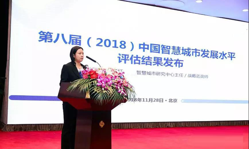 在28日上午的主论坛上,国脉智慧城市研究中心主任、"2018中国智慧城市发展水平评估"项目组组长孙泽红发布了"第八届(2018)中国智慧城市发展水平评估结果"。