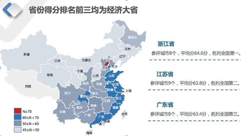 根据评估结果显示,2018年中国智慧城市平均得分为57.1分(满分100分),较2017年(50.7分)提升了6.4分,其中深圳以76.3分位列第一,杭州、无锡、宁波、上海、广州、南京、北京、成都、佛山等城市入围十强。总体来看,我国智慧城市发展平均水平较去年有所提升,但我国智慧城市发展水平参差不齐,离散性趋势依旧明显。分区域来看,受经济发展水平、城市信息化水平等影响,东部、南部地区在智慧城市发展方面存在明显优势。