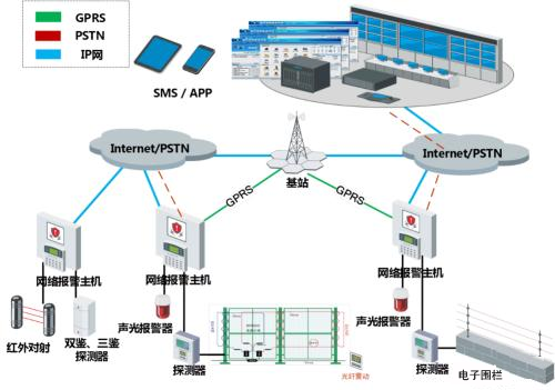 入侵报警系统通常由前端设备(包括探测器和紧急报警装置)、传输设备、中心控制设备部分构成。