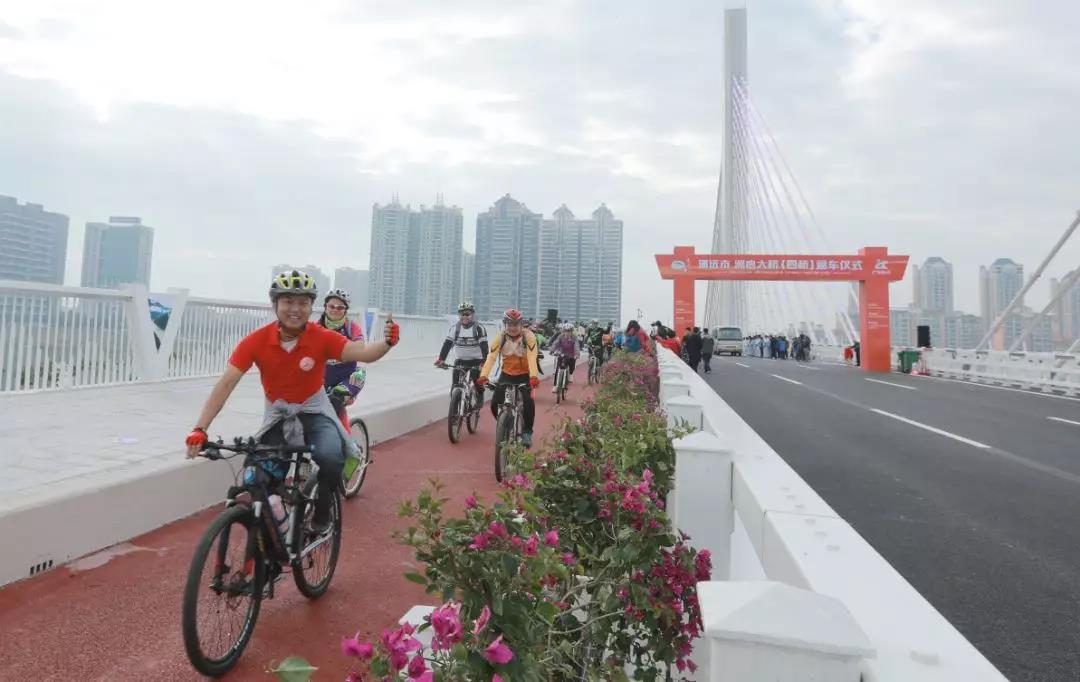 1219日,通车仪式后,50名本地自行车爱好者通过骑行的方式率先体验洲心大桥之美。清远日报记者吴明 摄