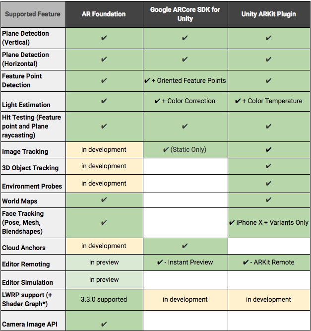 如果你只为ARCore进行开发,并希望实现所有的功能集,谷歌提供了一个Unity SDK。如果你只是为ARKit开发,并希望实现所有的功能集,你可以选择最初的ARKit Unity插件。