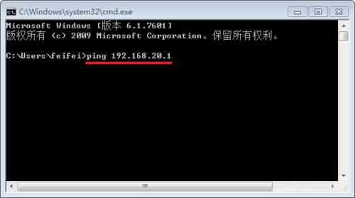 测试内网:拔掉外网网线(或者禁用外网网卡),打开cmd窗口,输入命令 ping 192.168.20.1 ,看是否能ping通,如果不能,请检查网线连接。
