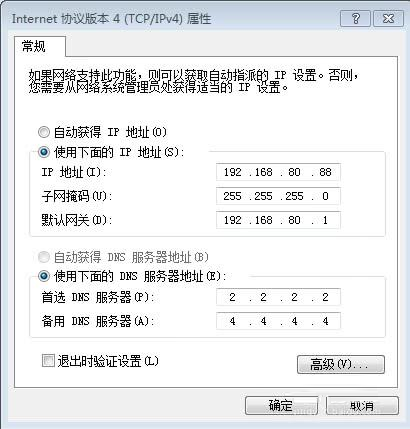 ip是192.168.80.88,子网掩码是255.255.255.0,网关是192.168.80.1