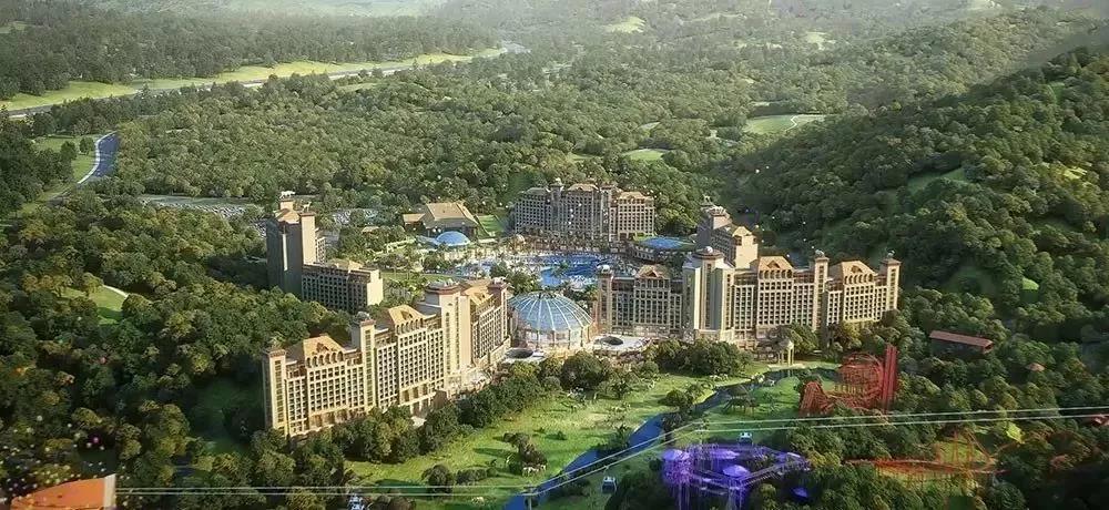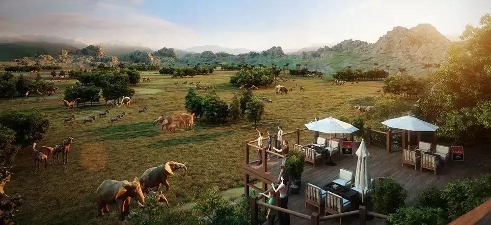 与森林乐园一起开工的主题度假酒店群将分别以长颈鹿、大象、犀牛和斑马为主题,四大酒店落成后共提供3500间客房。