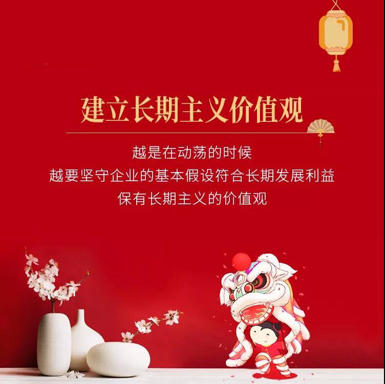 价值观之所以重要,因为它可能是唯一一个能够与市场和变化对抗的力量。巨变的环境会带来很多挑战,但是同时也会带来很多诱惑,如果仅仅是为了短期利润,或者采用机会主义的价值判断,会带来不可逆转的伤害。越是在动荡的时候,越要坚守企业的基本假设符合长期发展利益,保有长期主义的价值观是今天必然的一个选择。建立长期主义者的价值观,意味着去做有意义的事,意味着明晰的道德标准。有意义的项目能够超越变化带来的压力,而明晰的道德标准,对于复杂环境带来的不确定和风险、以及危害具有天然的保障作用。