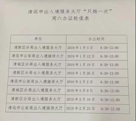 清远市出入境服务大厅“只跑一次”周六办证轮值表(1月—2月)出来啦。