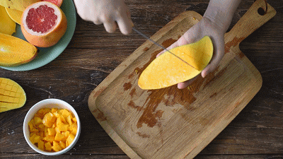 建议吃法:将芒果皮切成小丁,用开水冲泡20分钟后,放凉饮用。