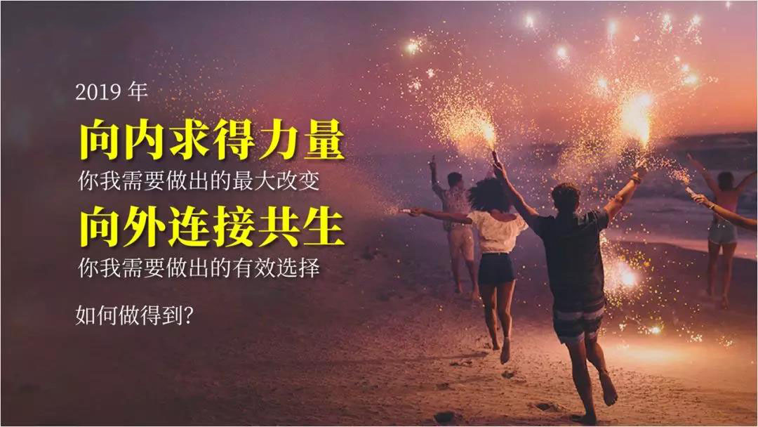 所以当我说2019年是一个分水岭的时候,它完全是一个从不确定走向确定的时间、从不确定走向确定的时代。从这个概念上来讲,我认为2019年开始,我们是可以比较笃定的,因为你做好你自己就好了。2019年,这是一个向内求得力量,向外获得共生的时代,愿你我跟上时代的步伐。