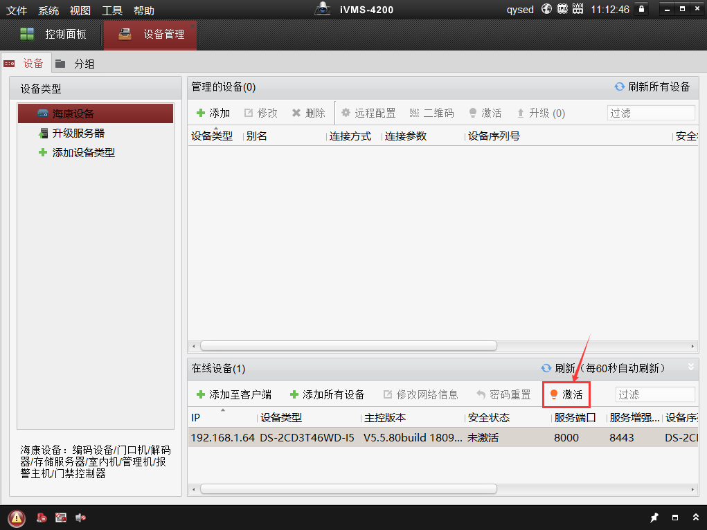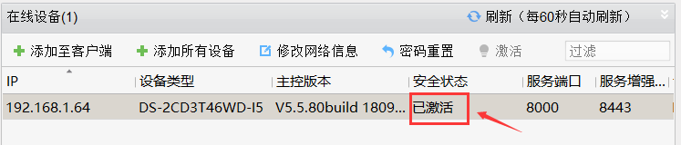 二、用网线连接电脑与摄像头,打开客户端,选择需要激活的在线设备点激活。