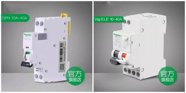 左边空气开关、右边漏电保护开关。漏电保护增加了保护漏电及触电时的触发,空气开关只会在过载时跳闸。