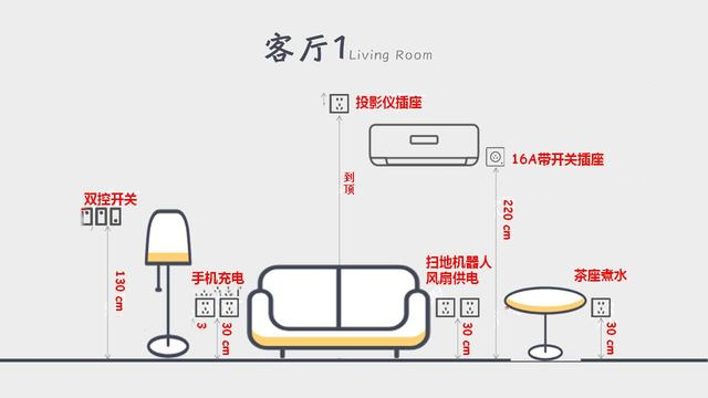 客厅背面一般预留5-7个插座,沙发旁可选择USB插座。