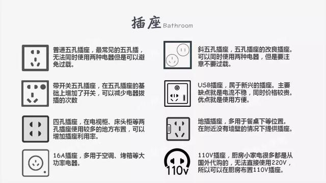 除了基础的五孔插座以外,还有其他几种常用的插座也在这张图上有所体现。