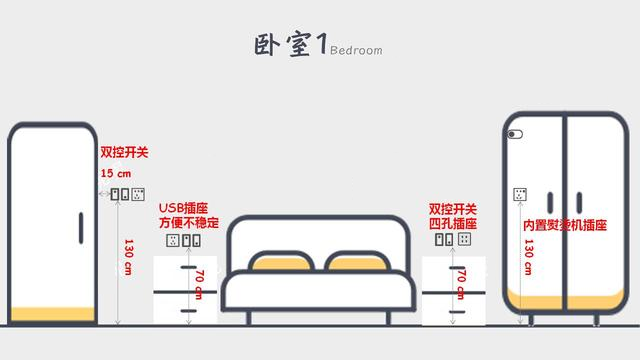 整个卧室可以预留6-14个插座,床头、梳妆台插座如果想隐藏可以降低高度。