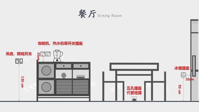 餐厅插座一般布置3-6个,主要用于小电器及餐桌火锅使用。