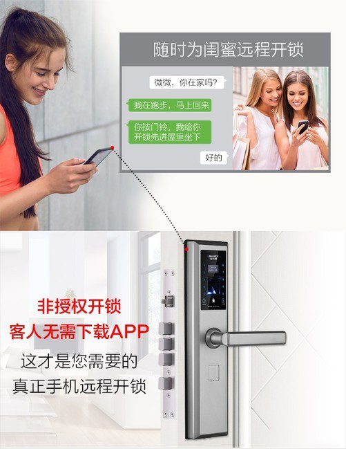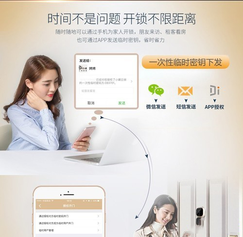 上文提到的一次性密码需要单独记忆,而现如今很多智能锁都可以进行远程连接。于是很多厂家就将远程连接(非远程开门)加入到智能锁的功能中,而“远程临时密码”功能就是代替“远程控制”的功能。