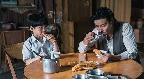 两父子一起吃油条
