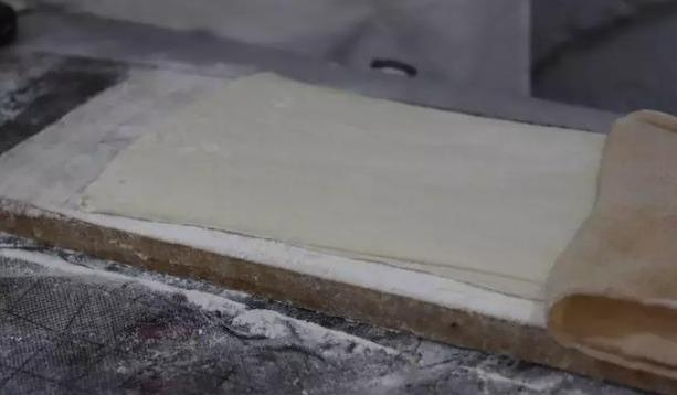 首先,将面团展开擀平,确保每张面皮厚度适宜,炸出来的油条才入口薄脆。