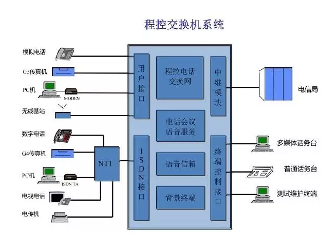 电话交换机是一种特殊用途的用户交换机,它有若干电话机共用外线,适用于机关、团体、中小企业等单位,也可以用于住宅和秘书电话。集团电话交换机不需要专职的话务员和维护人员,每部都可以通过指示灯了解整个系统的工作情况。当外线呼入时,可由任意一部话机应答,并可以转给所需的被叫。