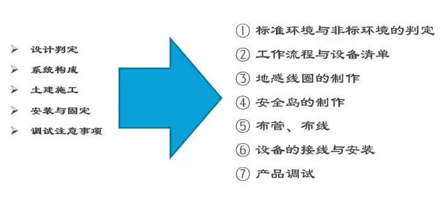 线管布置要在安全岛制作时一起放入,预埋线管要按布线的要求用镀锌管或PVC管。线材可以一起放入,或者等水泥凝固后用穿线器穿线。在设备安装位置放入膨胀螺栓,方便后期安装固定设备。放入位置需要和设备的开孔孔位一致。