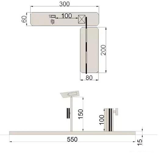 根据现场的实际情况和设备的安装位置来确定安全岛的尺寸,在制作时根据现场位置确定安全岛的摆放位置并用墨线弹出。