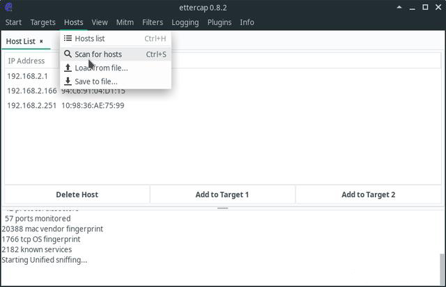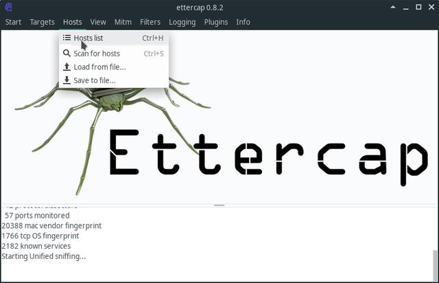 安装之后就可以使用ettercap-gtk进行局域网的主机监控了,运行时需要root权限。