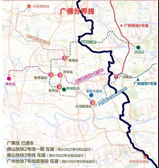 别看佛山1号线与广州2号线、7号线遥遥相对。