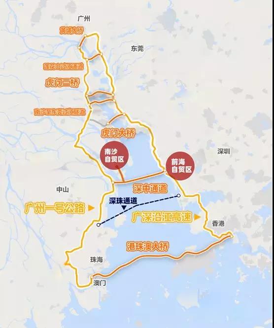 最近,深圳和珠海紧锣密鼓的启动深珠通道规划研究,广州则刚刚公布深中通道支线的环评报告书,预计2024年完工,届时南沙跟前海两大自贸区得以汇合。