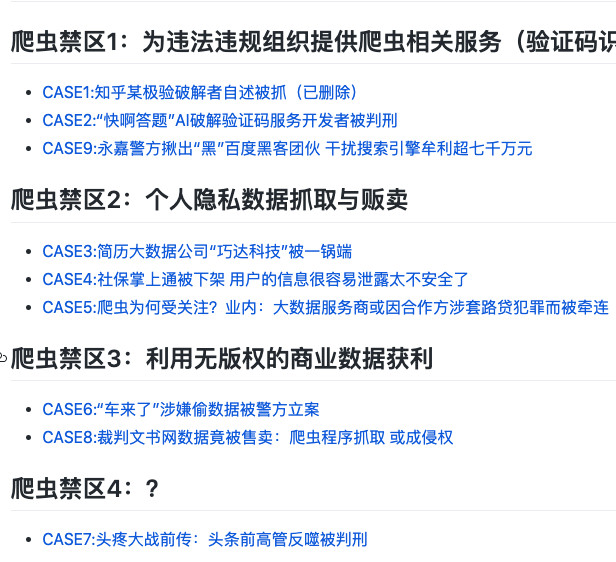 最近在 GitHub 发现了一个仓库,这个库整理了所有中国大陆爬虫开发者涉诉与违规相关的新闻、资料与法律法规。
