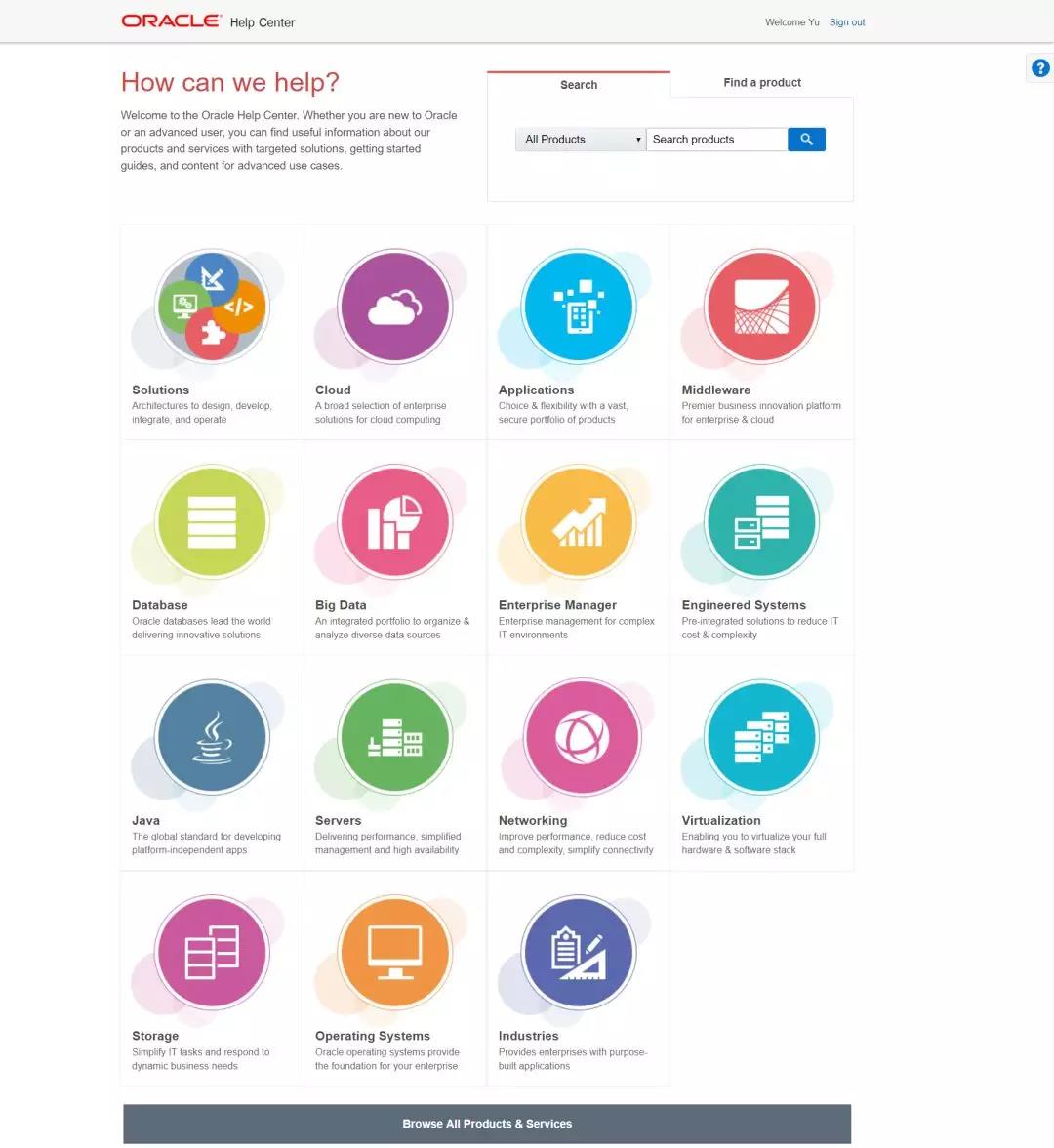 Oracle帮助中心也称为Oracle文档中心,这里汇集了Oracle所有产品的参考手册与帮助文档,其重要性不言而喻。Oracle的产品线非常丰富,浏览此网站可以大致了解Oracle的产品体系,包括数据库,中间件,应用,服务器,应用以及公有云。