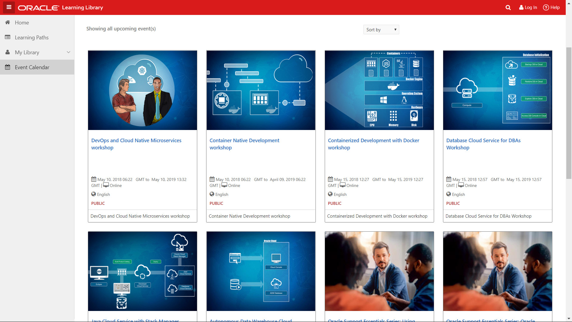 最后,您可以通过Event Calendar来关注与访问不定期发布的在线培训课程,已经结束的课程可以回放。