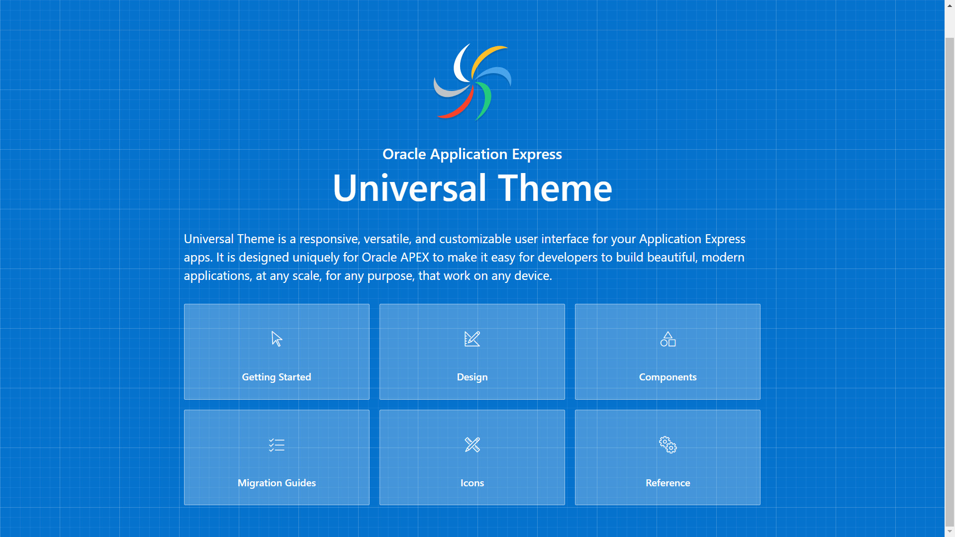 此外,APEX还在Universal Theme(https://apex.oracle.com/ut/)子站下提供大量的设计主题,你可以利用其中的图标,按钮等组件来设计您的APEX应用。