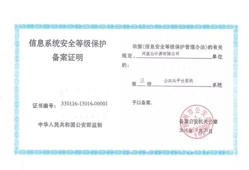 阿里云公共云平台定级为三级,金融云定级四级。
