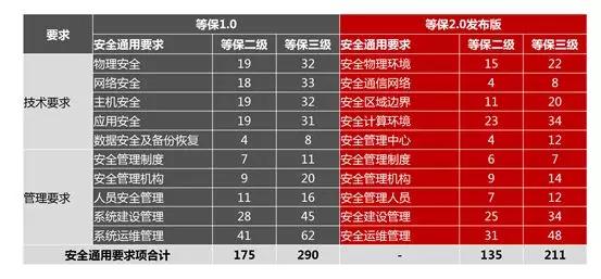 如图为等保标准更新,总体变化不大,等保2.0精简了控制项。