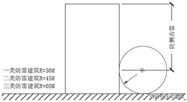 3)高层建筑,一类建筑超出30m,二类建筑超出45m,三类建筑超出60m,应做防侧击雷。