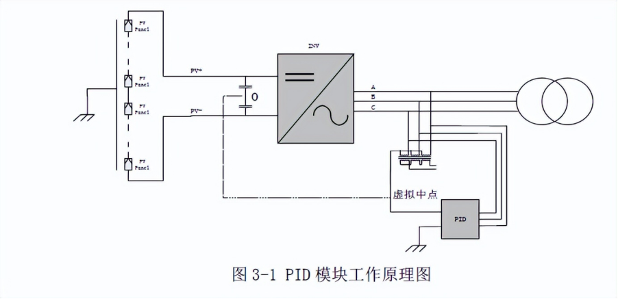 · 随着光伏系统应用电压的提高,致使晶体硅光伏组件中的电路与其接地金属边框存在电位差,在此电位差作用下出现离子迁移,造成组件光伏性能的持续衰减,业内称之为电势诱导衰减效应(PID效应)。为了消除PID效应,需提高电池板PV-对地电压,使所有PV 电池板PV-对地电压接近于0V,这样相对地之间电压就要升高。