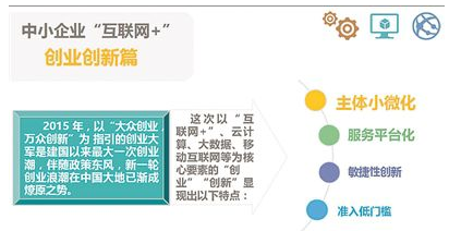 这次以“互联网+”、云计算、大数据、移动互联网等为核心要素的“创业”“创新”显现出以下特点:主体小微化、服务平台化、敏捷性创新、准入低门槛。