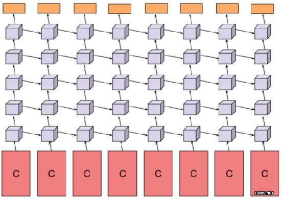 图5中红色是卷积网络,灰色是LSTM单元,黄色是softmax分类器。LSTM把每个连续帧的CNN最后一层卷积特征作为输入,从左向右推进时间,从下到上通过5层LSTM,最上的softmax层会每个时间点给出分类结果。同样,该网络在不同时间上的同一层网络参数是共享参数的。在训练时,视频的分类结果在每帧都进行BP(back Propagation),而不是每个clip进行BP。在BP时,后来的帧的梯度的权重会增大,因为在越往后,LSTM的内部状态会含有更多的信息。