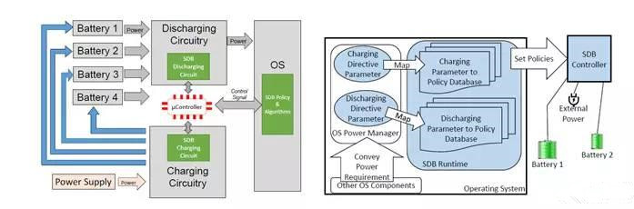 更关键的是,这种电池管理模式可以实现不同化学体系的混排管理。储能方式万万千,优点缺点不尽同。不同的电压/不同的电阻/不同的充放电倍率,这些电池组合在一起,能够正常工作么?微软就此,利用SDB,进行一个实验,得到了良好结果(Battery Management for 2-in-1s)。还有,在智能手表中,利用表带可以装配柔性的固态电池,搭配表盘下的聚合物锂电池,可以更好的延长待机时间,这就需要SDB更好的调控固态电池与液态电池之间的配合了。