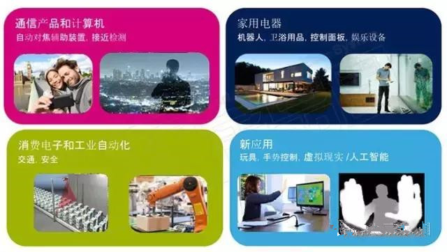 而ToF的应用还远不止于此。张程怡介绍,ToF的感测能力可支持各种功能,包括各种创新用户界面的手势感测或接近检测,因而在计算机、家用电器、消费电子和工业自动化以及服务机器人及VR/AI领域,都有显见的应用潜力。他举例说,如家电感应面板、笔记本电脑的用户探测或电源开关监控器;卫浴产品自动感应动作表现的提升,如水龙头、皂液器、干手机;手势识别;服务机器人的障碍物探测与防撞系统以及无人机和物联网(IoT)应用等。