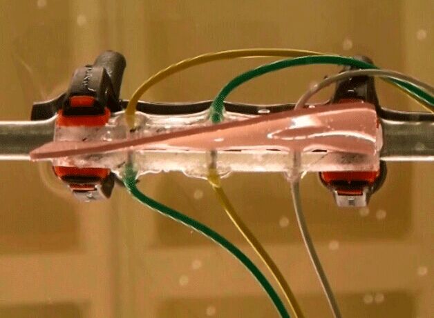 不过,软机器人学的巨大挑战之一就是寻找合适的材料。“它必须要软,但它也要能产生足够的动力来做很多不同的事情。”Kim 说。目前,他的团队正在使用的是一种叫做离子聚合物-金属复合物的合成材料,这是一种具有电活性的聚合物——这就意味着将电力通过该材料时会使它改变形状。